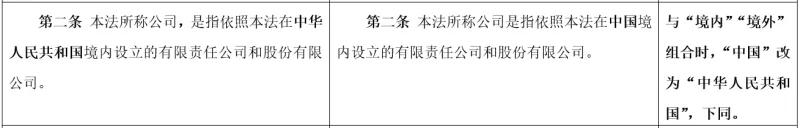 【新旧对比】本次修订,在与“境内”“境外”组合时,“中国”均改为“中华人民共和国”。